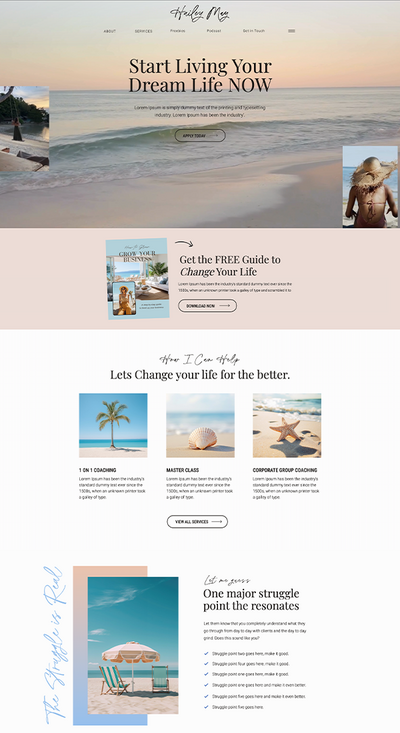 10+ Page Website: Home, About, Services, Contact, 2-3 Long-Form Sales Page, Blog, Podcast, 404, Legal Terms Pages, Link in Bio.